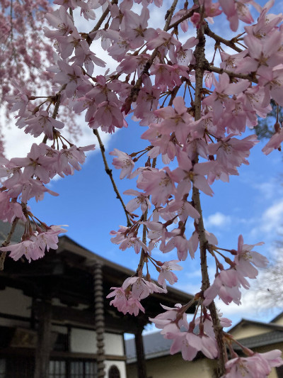 新しい年度を迎え、新たな生活がスタ-トされる方も多いことと思います。 光円寺では春を迎え、次々とお花が開花してきています☆ しだれ桜が満開で今がちょうど見頃です! ぜひお花見がてらご散策下さい。 今週4月8日(金曜日)はお釈迦様のお誕生日です。 週末は花御堂を準備しておく予定です。そちらもぜひお参り下さい。 <文 若坊守>