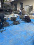 先日ご門徒さんにご協力戴きまして今年も3種類の蓮の根の植え付けを行いました。